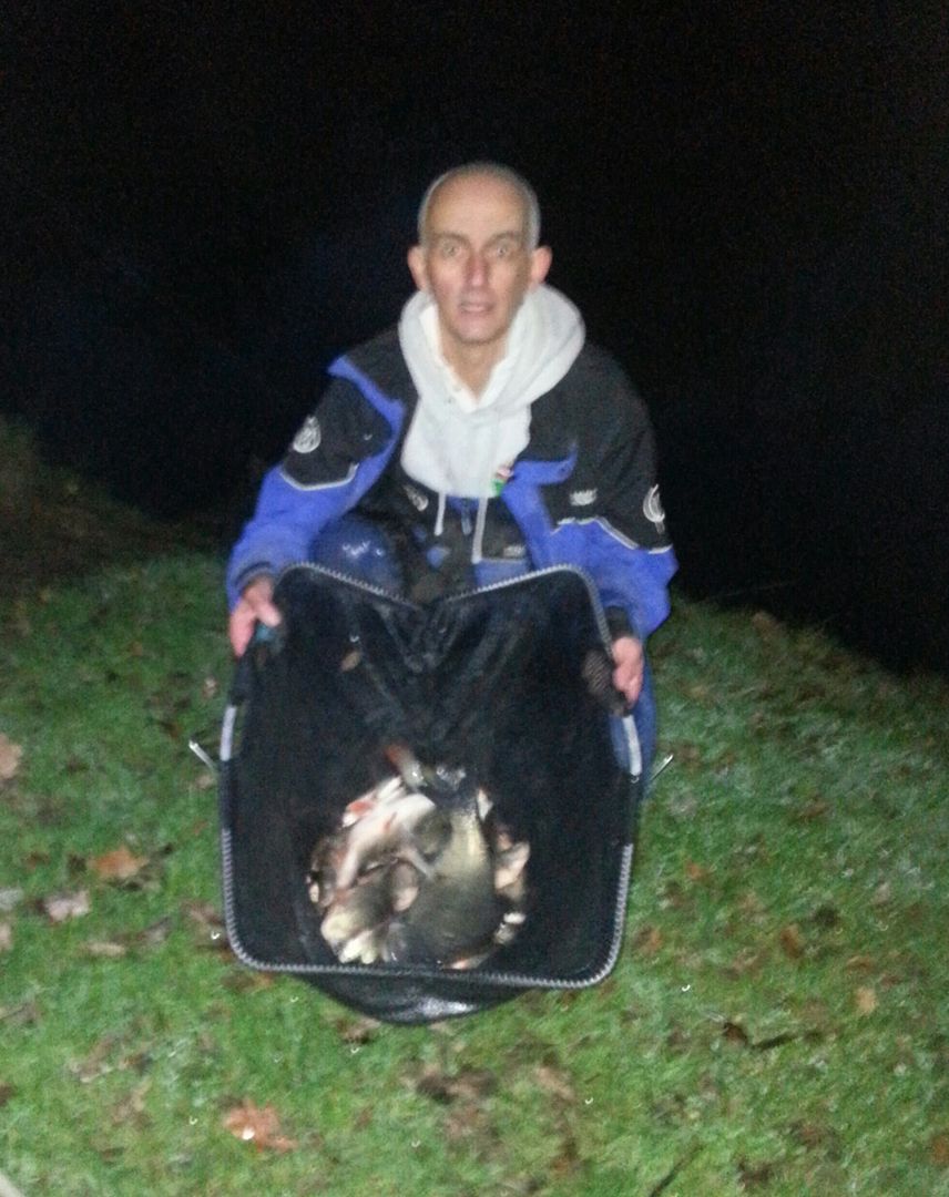 In third place and with no paste bucket today was me Eddie but having the strange feat of trying to avoid the swirling carp in my peg as they loved the loose fed casters I was putting in and with using maggot today i managed to catch a few bonus perch to 2lb to keep clear of John on peg 30.