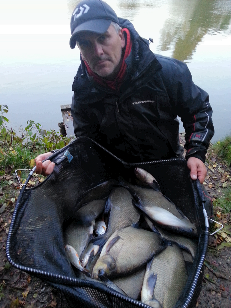 The main trick today was to avoid the feeding carp and line up the the roach perch and bream which was going to be a challenge as it was cold and windy with a splattering of rain during the 5 hours. Todays winner was Steve Waters who was fishing peg 22 and demonstrated a master class of how to catch silvers mainly big bream. Steve fished the edges where he caught roach and long to catch his bream feeding caster fishing caster on the hook and after 5 hours put a great weight of 55-10 for the win and record the highest silver weight of the year { well done Steve}.
